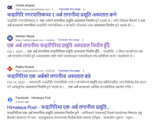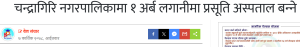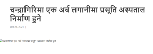 काठमाडौं । चन्द्रागिरिमा एक अर्ब लगानीमा प्रसूति अस्पताल निर्माण हुने भन्ने शिर्षकका समाचार पढेको २०७८ कार्तिक ७ गते देखि हो ।
