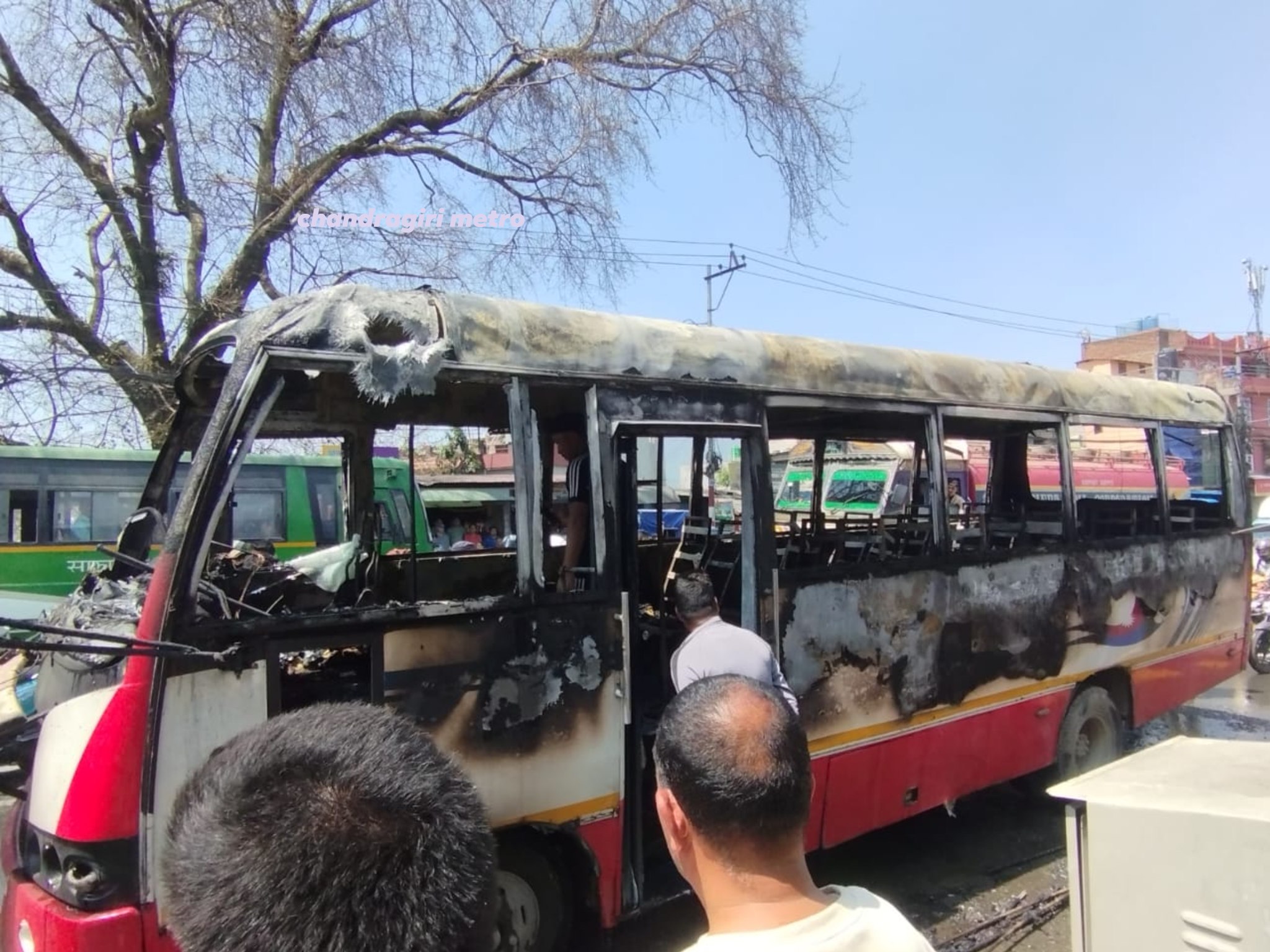 गुडिरहेको पाँच पोखरी यातायातको बसमा अचानक आगलागी भएपछि….