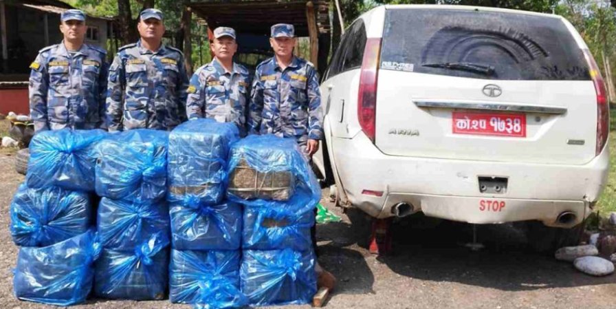 दुर्घटनाग्रस्त कारबाट ४२१ किलो गाँजा बरामद