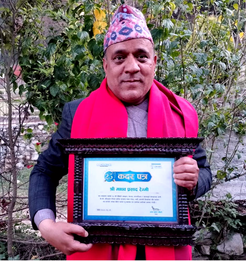 चन्द्रागिरि –६ का माधव प्रसाद रेग्मीलाई गर्यो चौधरी ग्रुपले सम्मान