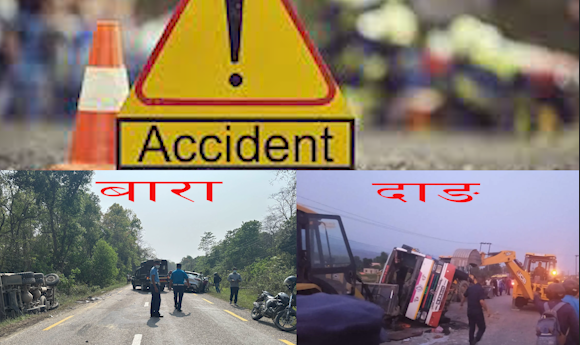 बारामा टिपरले कारलाई ठक्कर दिँदा दुई जनाको मृत्यु, दाङमा बस दुर्घटना हुँदा दुई जनाको ज्यान गयो,१५ जना घाइते