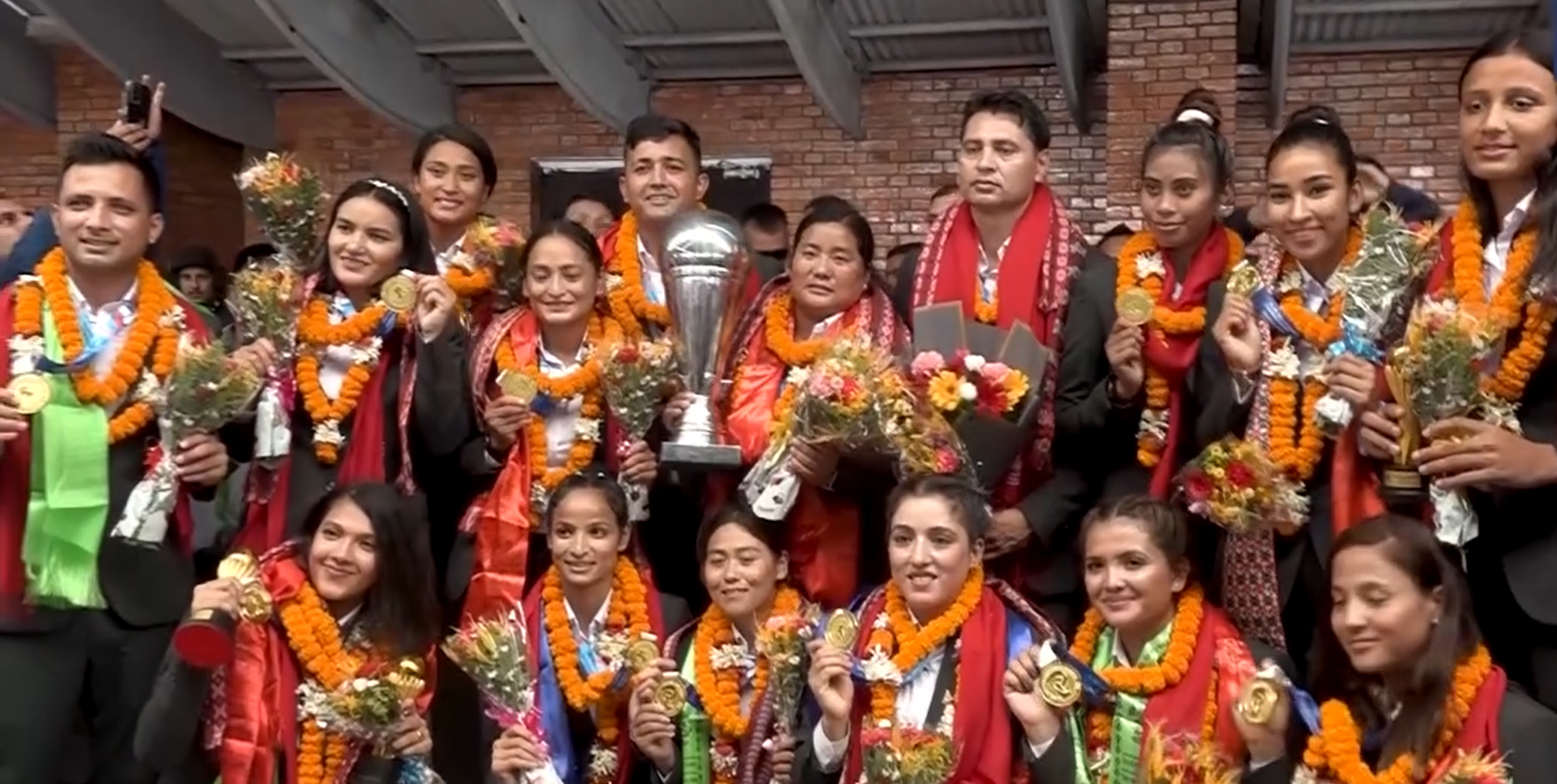 विश्वकपमा छनोट भएको नेपाली महिला टोली स्वदेश फर्कियो,विमानस्थलमा भव्य स्वागत